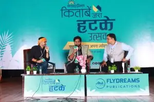 इसमें फ्लाईड्रीम्स के चिल्ड्रन विंग्स के मुख्य संपादक और लेखक ‘मिथिलेश गुप्ता’ और संपादकीय हेड ‘जयंत कुमार’ से बुकवाला के संस्थापक अनमोल दुबे ने चर्चा की। अनमोल ने ज़रा हटके किताबें विषय रखने का अर्थ पूछा। इस पर मिथिलेश ने कहा कि अलग हटके लिखना ही साहित्य को ज़िंदा रख सकता है हिन्दी की मूल किताबों मे आप देखेंगे सिर्फ एक जैसी ही विधा मे किताबें लिखकर हिट होने का एक फार्मूला बना हुआ है, हैरी पॉटर की जितनी हिन्दी अनुवादित किताबें बिक जाती है मूल हिन्दी मे उसका आधा बीकन भी मुश्किल होता नजर आता है, कारण? यही की हम कुछ नया नहीं रच रहे जो उनके कल्पना की दुनिया मे ले जाए। इसलिए हमने किताबें ज़रा हटके को ही अपनी थीम बना लिया है जो हिन्दी किताबों की भीड़ मे सबसे अलग कार्य कर रही है। जयंत कुमार ने कहा कि आज के दौर में किताबों का कवर अच्छा होना जरूरी है लेकिन उसके बाद भी फ्लाईड्रीम्स अक्सर उसमें बदलाव करती है। जिस तरह से पाठक हमसे इन विधाओ मे और किताबें लाने का अगढ़ करते हैं वो बदलाती है की साहित्य की इस दुनिया मे अभी हम कितने पीछे चल रहे हैं, इसलिए प्रयोग धर्मी विधाओं मे हम खूब कार्य कर रहे हैं! नए लेखकों और पाठकों के लिए “किताबें जरा हटके’ अब वह उम्मीद बन चुका है जिसमे वो अलग-अलग विधाओं में मूल हिन्दी की किताबें पढ़ पा रहें हैं।
